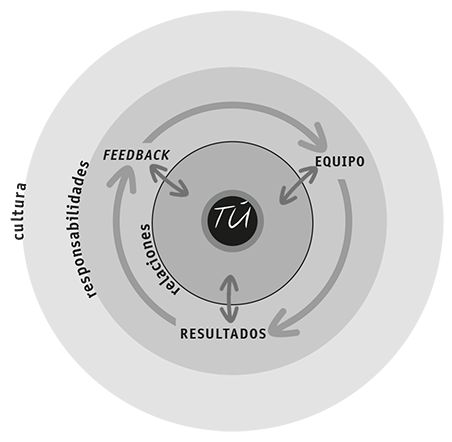 Entre tus responsabilidades y relaciones se establece un ciclo virtuoso. Las relaciones se refuerzan aprendiendo la mejor manera de dar feedback, solicitarlo y alentar su intercambio entre los demás; colocando a las personas indicadas en los puestos indicados en tu equipo, y alcanzando de manera colectiva resultados que ni siquiera podrías soñar con alcanzar de manera individual. Por supuesto, también puede darse un círculo vicioso entre las responsabilidades y las relaciones. Cuando no logras brindarle a la gente el feedback que necesita para desempeñar bien su trabajo, cuando colocas a personas en puestos que no quieren o para los cuales no están preparadas o cuando las fuerzas a alcanzar resultados que les parecen poco realistas, erosionas la confianza.