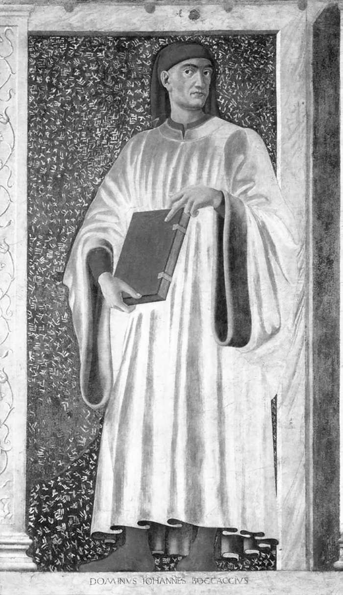 De la multitud de amigos con los que Petrarca habló de libros en sus cartas, destaca Giovanni Boccaccio. También él había llegado a la vida literaria gracias a una rebelión temprana. Nacido en 1313, nueve años después de Petrarca, no conoció, como este, el exilio: viviría la mayor parte de su vida bastante cómodamente en Florencia y en su casa familiar cercana, en Certaldo.20Su camino, no obstante, tampoco fue fácil. Su madre podría haber muerto muy pronto: no sabemos nada de ella; no jugó ningún papel en su crianza, y él creció con una madrastra.