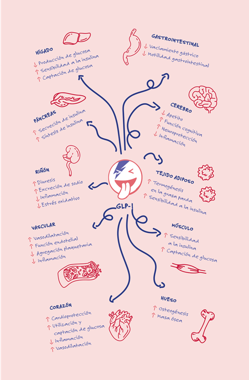 Si las siglas de estos péptidos te parecen raros, los nombres completos son una auténtica fantasía: glucose-dependent insulinotropic polypeptide (GIP) and glucagon-like peptide-1 (GLP-1).