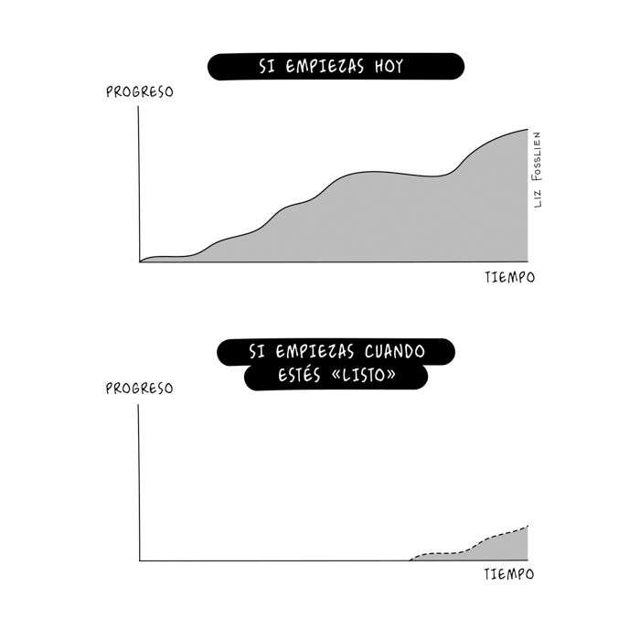 Si esperamos hasta sentirnos preparados para asumir un nuevo reto, podría ocurrir que nunca empecemos a intentarlo. Quizás nunca llegue ese día en que nos levantemos por la mañana y, de repente, sintamos que ya estamos preparados. Al contrario, nos sentiremos preparados cuando demos el paso, cueste lo que cueste.