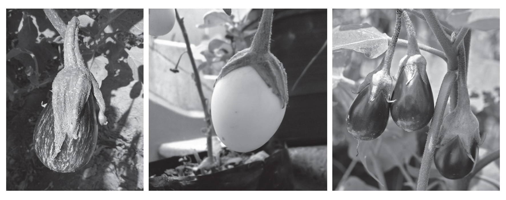 Actualmente, cuando nos imaginamos una berenjena grande, de pulpa blanca, con semillas muy pequeñas y de color morado estamos pensando en la berenjena black beauty, una variedad cuya primera referencia aparece en Estados Unidos en el año 1911. Su origen es incierto, pero parece un híbrido hecho a partir de material genético de diferentes procedencias, todas occidentales (frutos grandes), caracterizado por su sabor suave. Sabemos que las primeras variedades de berenjena que llegaron a Estados Unidos no eran moradas porque su nombre en inglés americano es eggplant, ‘planta huevo’, por lo que debían de ser blancas. En los bancos de semillas pueden encontrarse berenjenas moradas y negras, pero también blancas, rojas o amarillas. La pulpa puede ser blanca o no. En general, muchas variedades antiguas, cuando las cortas, se vuelven negras enseguida por la acción de los antioxidantes que contienen.