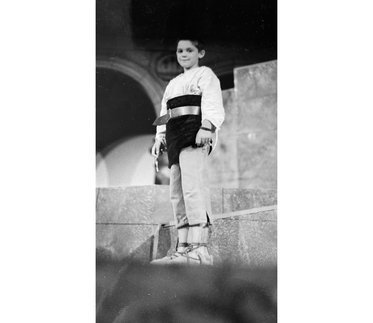 Como decía, debuté pequeño. Mi madre contaba que, habiendo aprendido a andar hacía poco tiempo, me escapé de los brazos de un regidor para meterme en el escenario con ella, Rossy de Palma y Beatriz Carvajal. En aquel momento tenía un año y medio, y no lo tengo registrado con detalle, pero sí guardo un leve recuerdo. Con cinco años, interpreté a un camarero torpón que llevaba boles de patatas fritas a las mesas donde estaba sentado el equipo, en las primeras reuniones de la obra con la que el Teatro Real reabrió sus puertas, después del mítico incendio. A Paco Nieva, el director, debió de hacerle gracia, porque dijo unas palabras que marcarían mi vida: «Oye, Amelia, y el niño, ¿no querrá salir en la obra?».