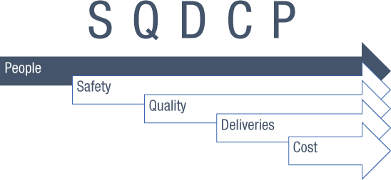 The recommended structure of indicators is SQDCP – Safety, Quality, Delivery, Cost, People. This framework makes it easy to assign priorities to the business problems that might appear, preventing us from having to deal with hundreds of issues at once.