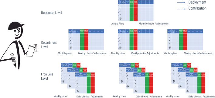 To summarize, with Hoshin Kanri we gain visibility of the direction we want the business to move towards and deploy that vision to the rest of the organization. This activity has to be tied to management, to ensure the deployment takes place according to the plan.