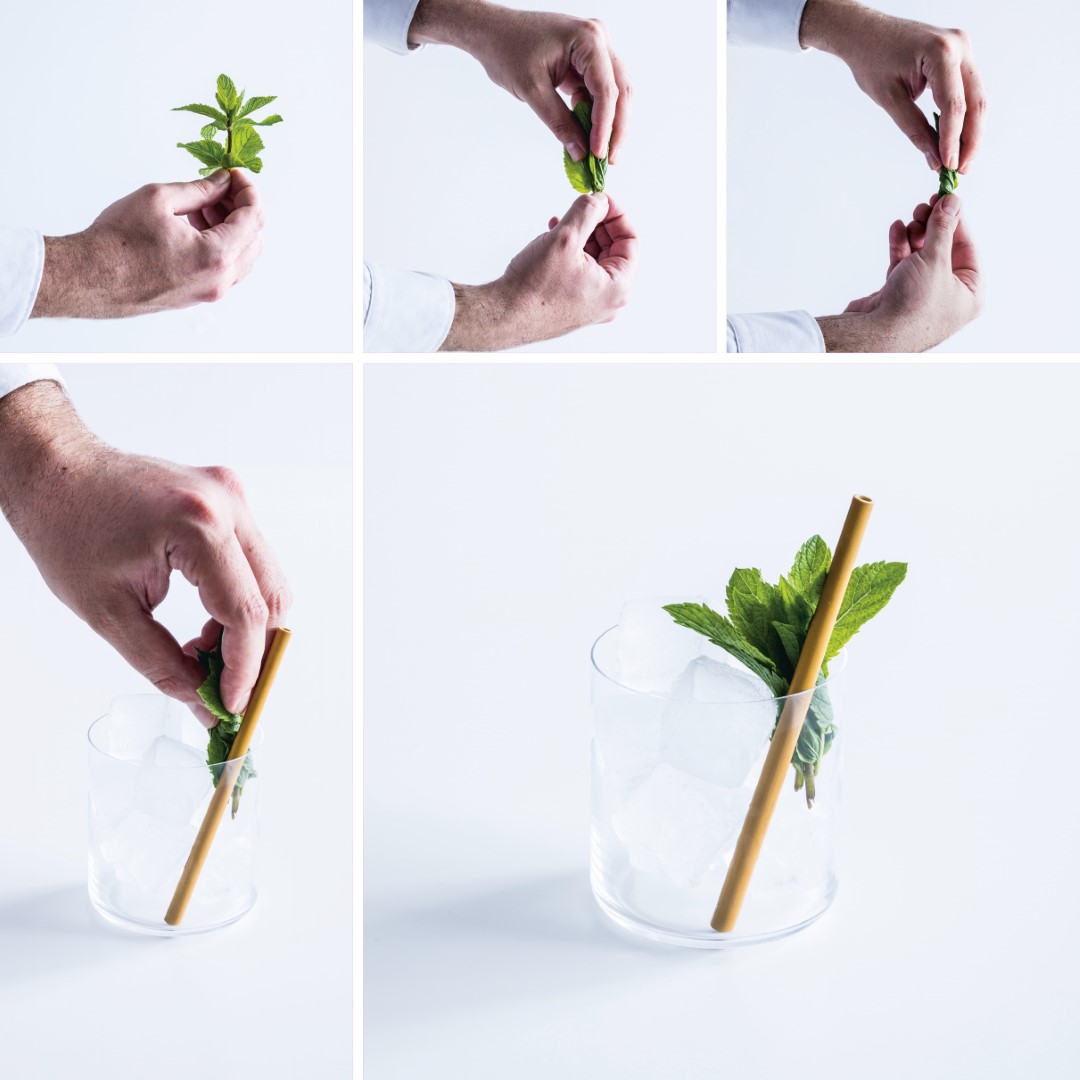 2 Colocamos los ingredientes en el vaso en el orden indicado y seguimos los procedimientos de la receta elegida (Caipirinha, pág. 70; Old Fashioned, pág. 172; Mojito, pág. 178), ya que cada cóctel realizado en vaso tiene sus características particulares.