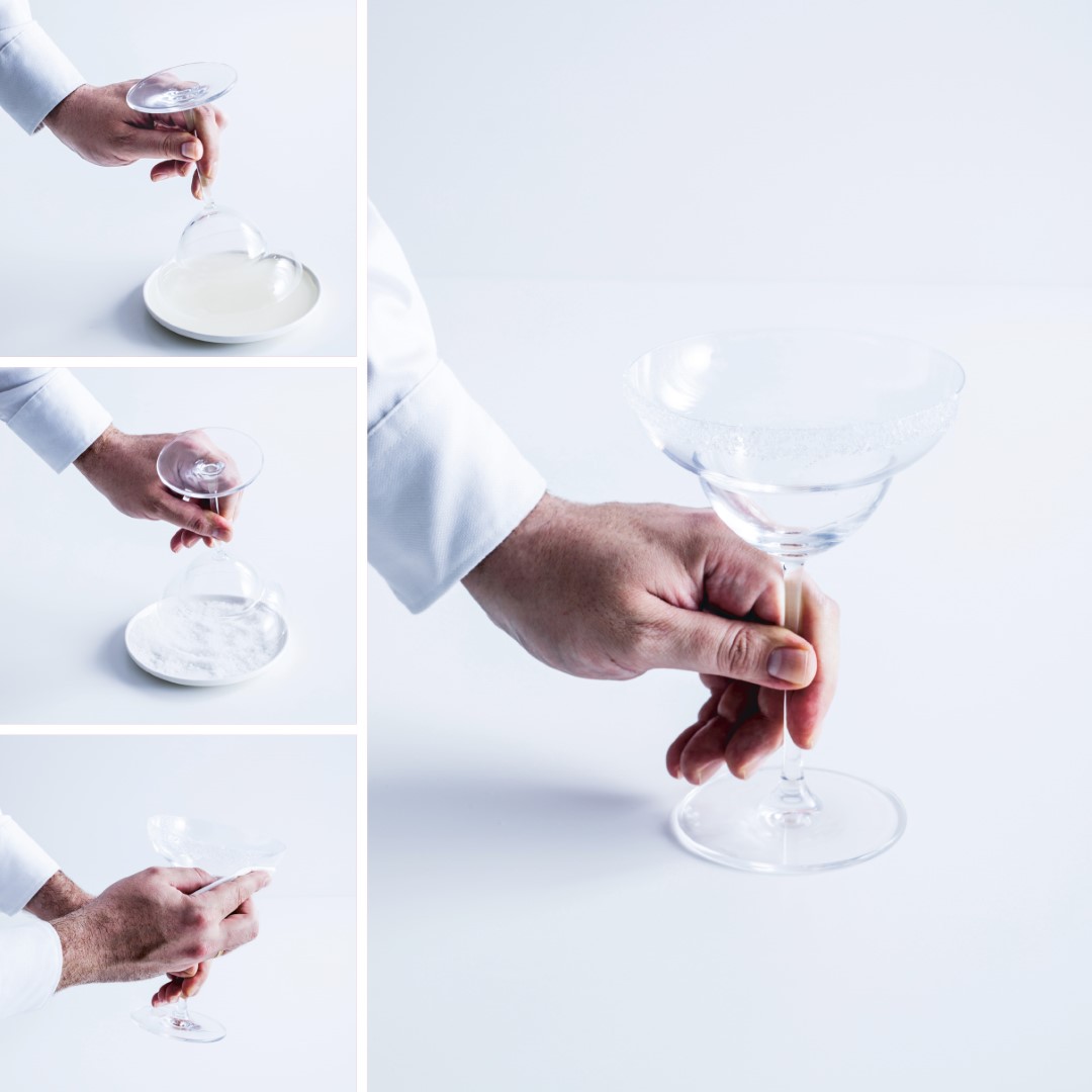 Se puede aplicar el rimming solo a la mitad de la copa para ofrecer la elección en el momento de la degustación.