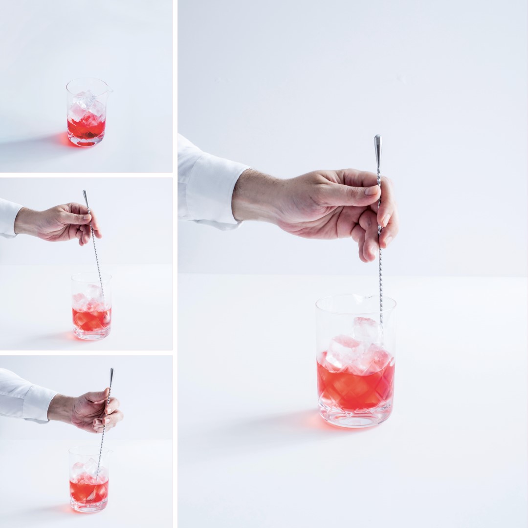 En el vaso mezclador (pág. 56): el cóctel se prepara en un vaso mezclador y, a continuación, se vierte en el vaso de servicio.