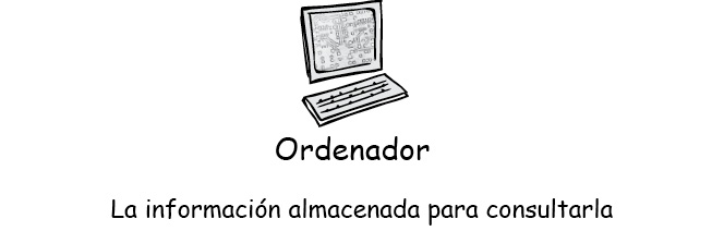 El Ordenador almacena la información que han metido en él el Humano y el Chimpancé. Luego usa esta información para actuar por ellos de forma automática, o puede servir de punto de referencia.
