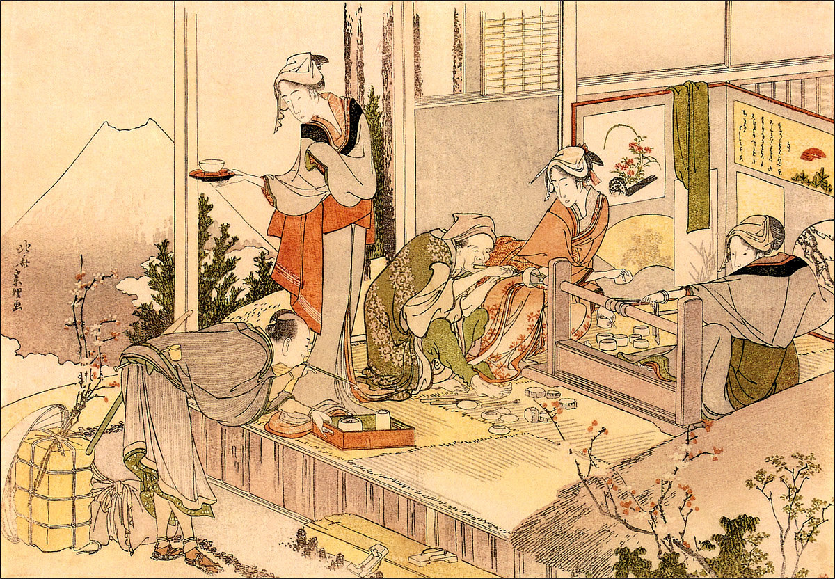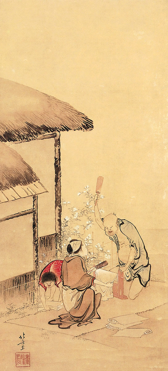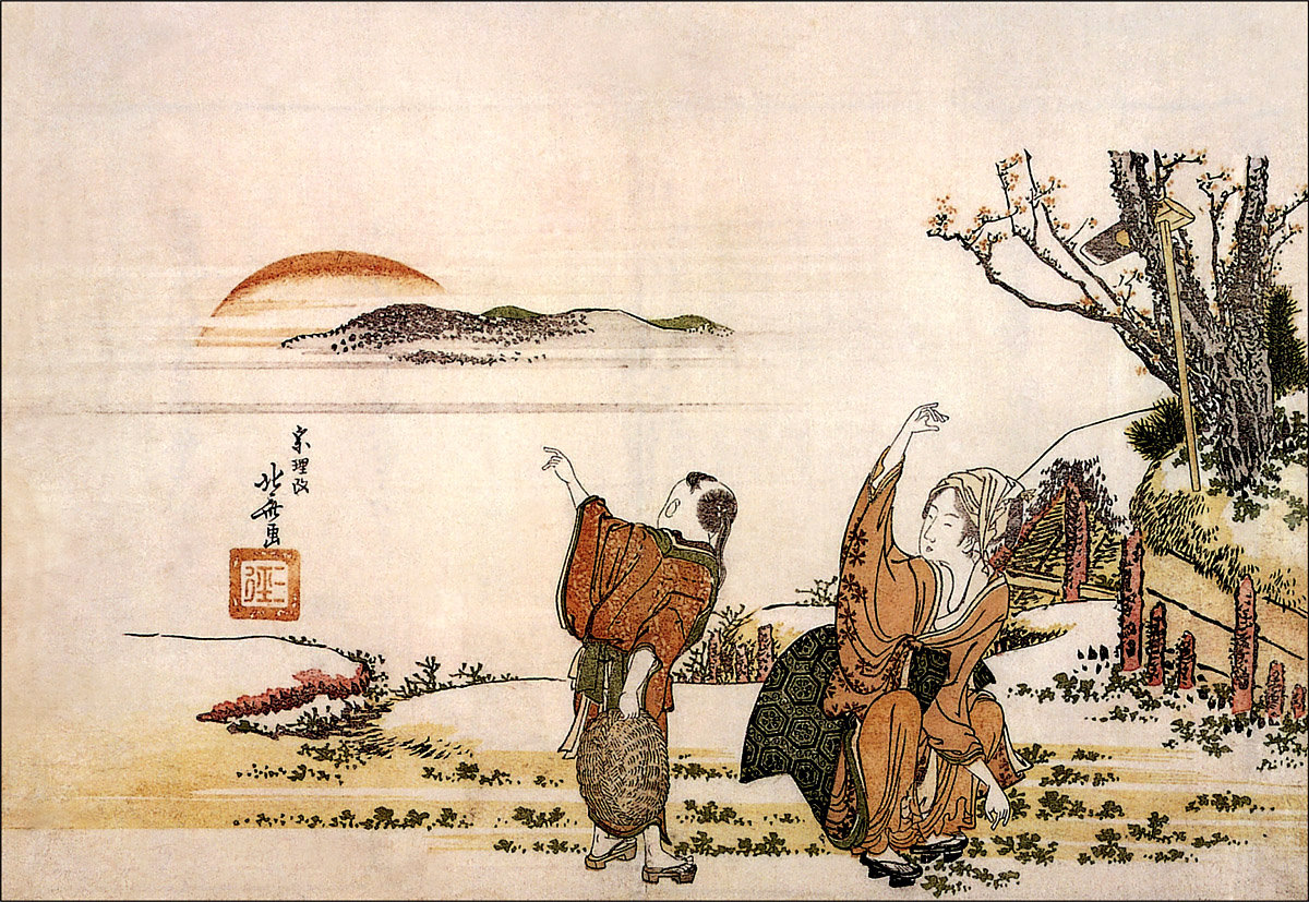 To his attempts at polite conversation and his remarks about the weather, Hokusai made no answer, but remained seated without even turning his head, until at last Baiko retired, angry and unsuccessful. In a few days he returned with humble apologies, and was well received, and from that time forward the two were friends.