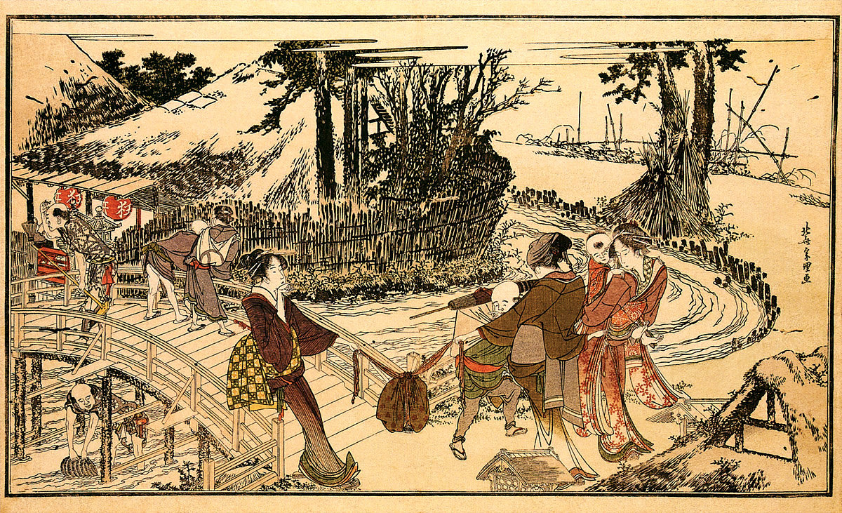 Crossing a Bridge, from the kyōka album The Stamping Song of Men (Otokodoka), 1798