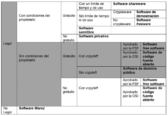 Por esta razón, creemos que es conveniente distinguir los distintos tipos de software que son susceptibles de ser denominados libres, a pesar de que, como explicaremos, no lo sean en el sentido estricto de la FSF.