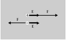 La força que actua sobre una càrrega puntual positiva té el mateix sentit que E i la que actua sobre una càrrega negativa és de sentit oposat (figura 1.3).