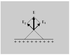 Si considerem un pla infinit carregat uniformement amb una σ > 0, les línies de E s’allunyen del pla (amb sentits oposats a cada costat). Per raons de simetria, E ha de ser perpendicular al pla (figura 1.12) i ha de ser el mateix en tots els punts equidistants al pla.