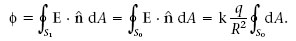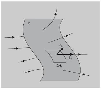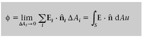 Aleshores, el flux del camp elèctric a través de tota la superfície S es defineix com la suma de tots els Δφ i quan s’ha fet el límit en què l’àrea de cada element tendeix a zero. Una suma definida així és una integral de superfície, i l’expressió matemàtica del flux del camp elèctric és
