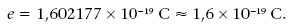La càrrega d’un neutró és nul·la, la d’un protó és -e i la de l’electró és e, sent e la unitat fonamental de càrrega.