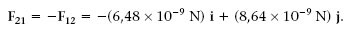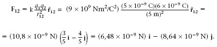 Si a la figura 1.1 considerem que q 1 = 5 nC i q 2 6 = nC, per calcular F 12 i F 21 s’ha de procedir de la forma següent. Com que r 1 (3 m) i (6 m) j i r 2 (6 m) i (2 m) j, tenim que