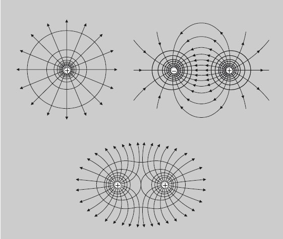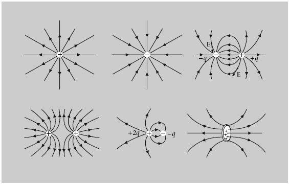 Els diferents exemples de la figura 1.7 mostren una propietat general del camp elèctric: per a qualsevol distribució de càrregues, les línies del camp elèctric sempre comencen en les càrregues positives (o l’infinit) i acaben en les negatives (o l’infinit).