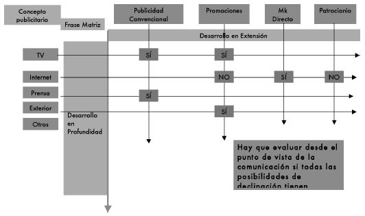 Adaptación de la declinación a los diferentes medios y soportes, público objetivo, técnicas publicitarias, etc.