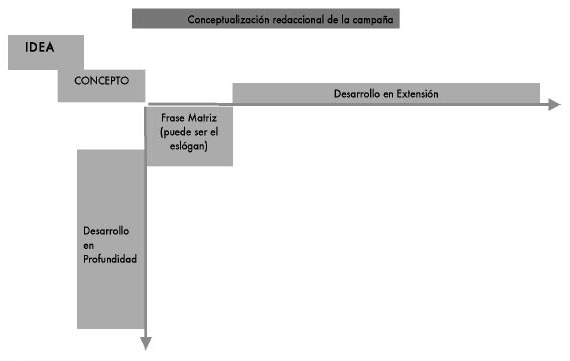 Como complemento a estos puntos de vista, los autores establecemos la siguiente secuencia del proceso de conceptualización, que incluye el eje de campaña.