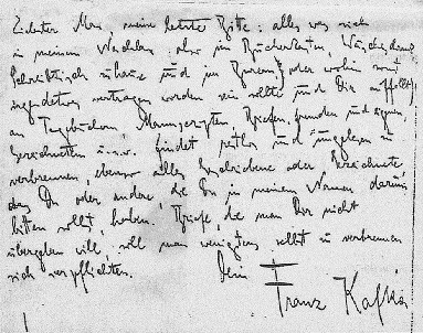 Cuando Virgilio prohibió en su testamento la publicación póstuma de sus manuscritos inconclusos —voluntad que Augusto no respetó, preservando así la Eneida para la posteridad—, su decisión obedecía a motivos literarios y estéticos. El caso de Kafka es distinto. Kafka quería tener la certeza de que se destruyera sin excepción «todo lo que he escrito o dibujado», todos los papeles que hubieran quedado en su casa, en la oficina, en casa de amigos y conocidos. Así pues, esta disposición tan radical no afectaba únicamente a los textos literarios, sino a todos los testimonios que había dejado sobre papel. Puesto que no concebía su existencia al margen de la escritura, su última voluntad no podía ser más consecuente: al término de su existencia física, se negó la supervivencia en los testimonios escritos.