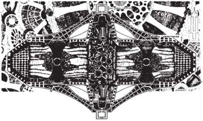 Este modelo orgánico o espontáneo está implícito en las ideas de J. Ruskin, de Camilo Sitie (figura 1.1) y en los postulados de Patrick Geddes a finales del siglo pasado2. Y se sigue aplicando en la factura de ciudades en sociedades que guardan aún tradiciones culturales integradas, como la arquitectura urbana colonial en América Latina, o que buscan formas mediante procesos organicistas como Paolo Soleri3 (figura 1.2). Esta tesis ha sido desarrollada especialmente por Lewis Munford, y Team 10.