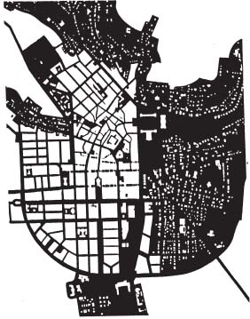 Los problemas de método y teoría se originan en una ciudad como «cosa», y se refieren al ingenio aplicado a la construcción, a la estética, a la geometría y a la correcta ubicación. Son el tipo de ciudad que construyen Hipódamos de Mileto, Vitruvio, Leonardo, Alberti, Palladio, Jones, Fontana, Ledoux o Burnham4. La ciudad que entra en crisis con la Revolución Industrial (figura 1.3).