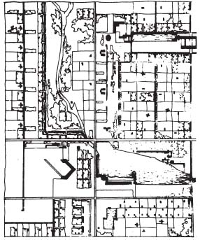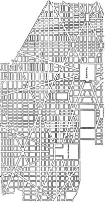 Sector del plano de la ciudad de Washington, D.C., Publicado en «La práctica del urbanismo». Reproducción de la City Parks Association, Filadelfa.