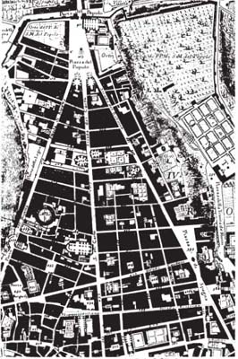 Roma: Sección del plano G.B. Nolli de 1548. Diseño urbano de la Escuela Barroca encargado por Sixto V.
