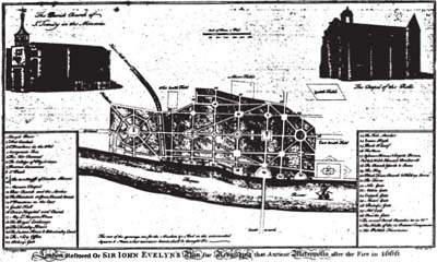 Londres: Plano de John Evelyn, para la reconstrucción de la ciudad después del incendio de 1666.