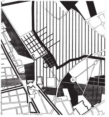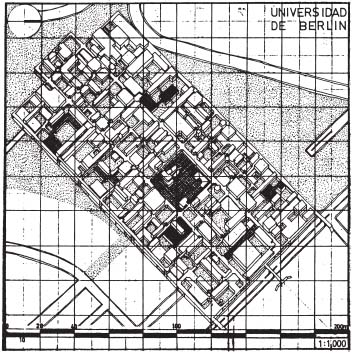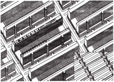 Hilberseimer: Dibujo de un sector céntrico de Berlín, planteado en 1926.