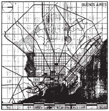 «En torno a la cruz mágica de las coordenadas, los monumentos públicos y las viviendas privadas de esta ciudad, las tiendas, teatros e industrias, las escuelas, las prisiones y las iglesias, danzarían eternas cuadrillas con la precisa elegancia de líneas y puntos de un teorema de Euclides. Una realidad irracional, un fenómeno biológico en su origen y en su desarrollo, iba entonces de ese modo, a hacerse conformable a una creación pura de la mente» (figura 2.1).