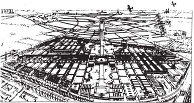 «...Trazada como el jardín de Versalles en una trama rígida y geométrica, esta ciudad capturaría en una red fija de líneas paralelas y radiales, todos estos confusos y contrarios organismos que la extraña evolución de la sociedad cívica había traído a la existencia».