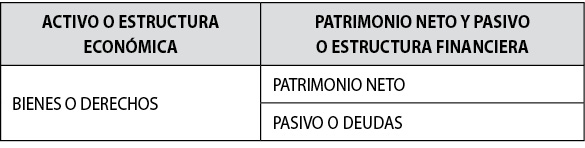 El importe de la estructura económica o ACTIVO es coincidente con el importe de la estructura financiera o PATRIMONIO NETO + PASIVO dado que cualquier elemento del activo habrá tenido una fuente de financiación determinada.