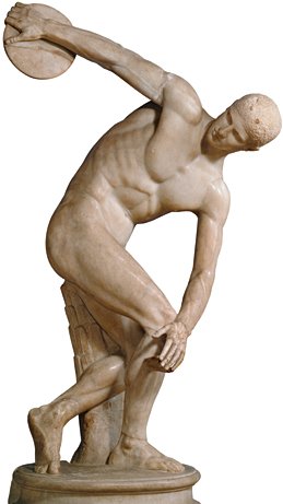 En el Discóbolo de Mirón, vemos la forma humana liberada de la posición frontal de pie de estatuas anteriores. Aquí, el artista está claramente interesado no sólo en el cuerpo del atleta, sino en el movimiento del lanzador de disco. Los músculos tensos y el esfuerzo en la preparación para su tiro, el rostro concentrado en su actividad. Aunque la postura, con los brazos formando un amplio arco, es revolucionaria, la pieza todavía está creada para verse desde el frente. No sería sino hasta el siglo siguiente que los artistas comenzarían a concebir la escultura que puede verse desde todos los lados.