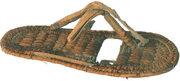 9. Ägyptische Sandalen aus Pflanzenfasern, Musée Bally, Schönenwerd, Schweiz.