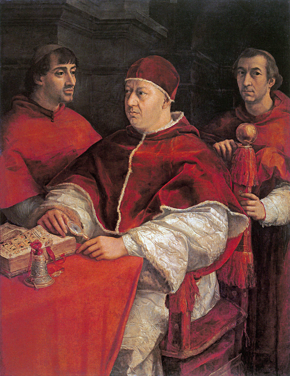 Raphael (Raffaello Sanzio), Leo X with Cardinals Giulio de’ Medici and Luigi de’ Rossi, c. 1517.