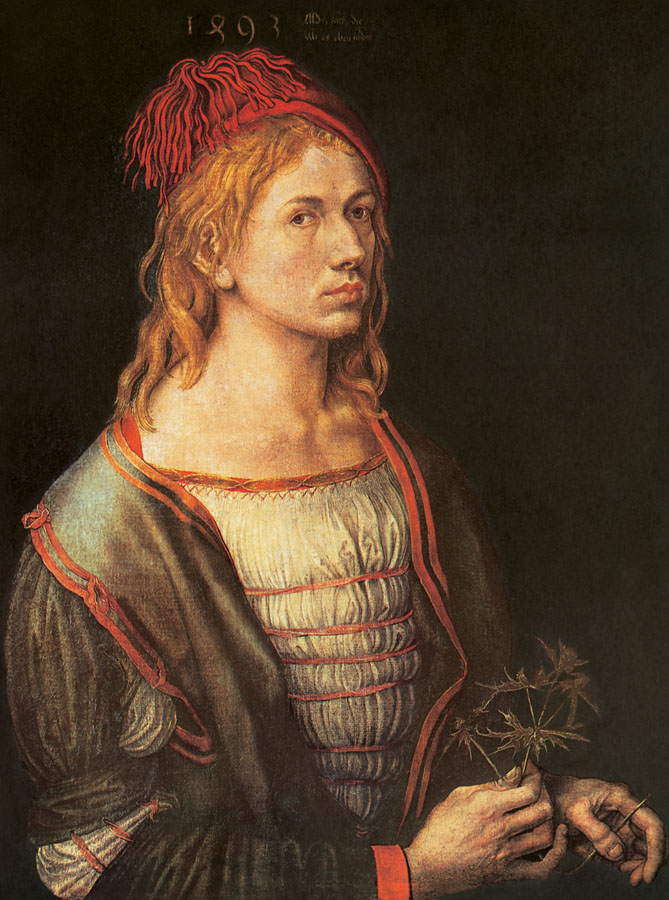 02. Albrecht Dürer, Self-Portrait or Portrait of the Artist Holding a Thistle, 1493.
