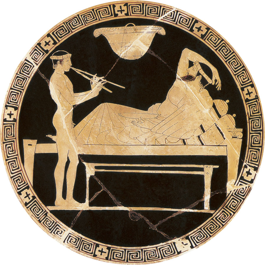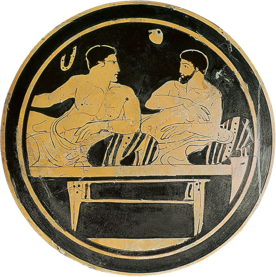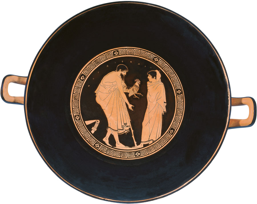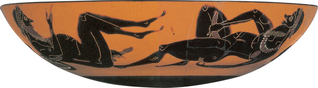 15. The Kissing Competition, c. 510 BC. Attic red-figure dish.
