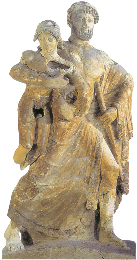 31. Pan Teaching the Flute to Olympos, 4th century BC.
