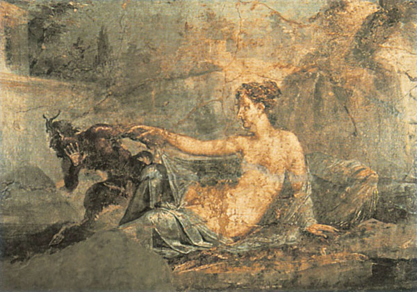 It is on the frescoed and graffiti-filled walls of public buildings and in the private homes of Pompeii where we get a glimpse into the sexual preferences and activities of common culture. It was during the Augustan period that a “domestication of desire” had occurred both in Rome and in its provinces. That is, both upper class (including the emperor himself) and lower class people possessed and displayed little paintings, wall frescos, and decorative objects in their homes that showed mythological characters (e.g. satyrs, nymphs, Pan, hermaphrodites) and human couples engaged in a variety of sexual acts and positions (Clarke, pp.286-87). The representation of sex in its multiple aspects had become fashionable in Pompeii. In the first century AD, scenes of lovemaking of varying quality could be found in Pompeian bedrooms, dining rooms, or in public baths, hotels, and brothels.