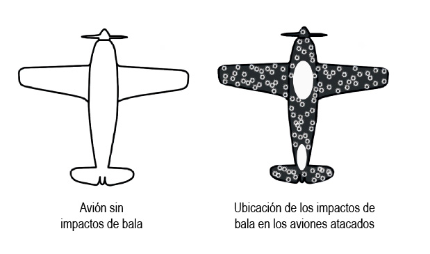 Pero Wald no estaba de acuerdo. Se percató de que los jefes habían pasado por alto datos clave. Solo estaban teniendo en cuenta los aviones que lograban volver, y no aquellos que no habían vuelto (es decir, los que habían caído). Los agujeros de bala sugerían que las zonas cerca de la cabina de mando no necesitaban refuerzo porque nunca recibían impactos. De hecho, los aviones que eran alcanzados en estas zonas se estrellaban porque era su punto más vulnerable.