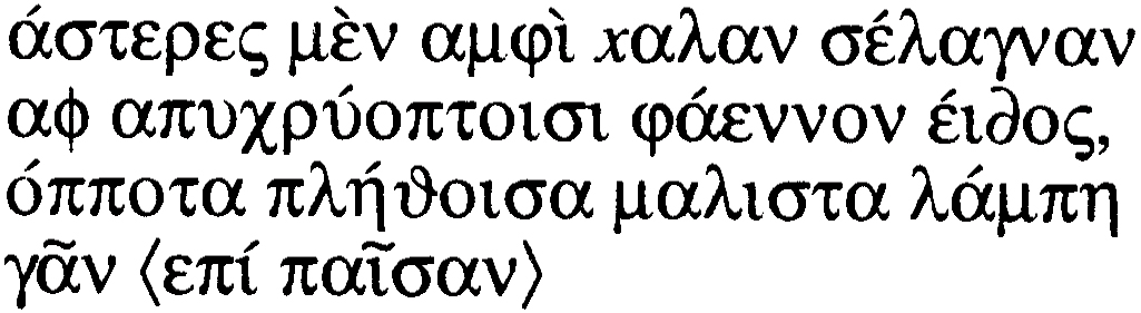 A los cuatro voluntarios se les leyó repetidamente, durante diez veces, las poesías griegas cuyo texto original y traducción escribimos a continuación.