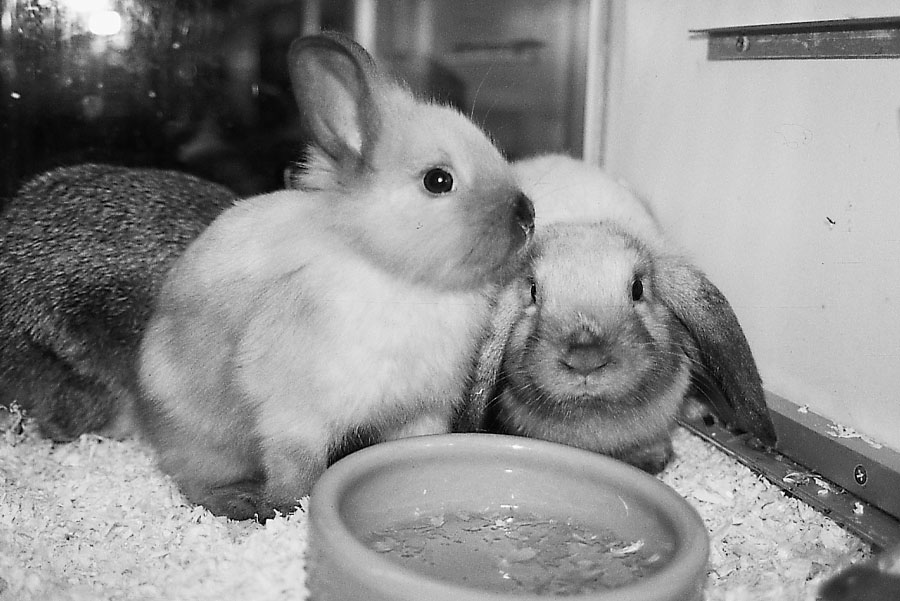Cualquier animal que tengamos en casa es un animal de compañía a todos los efectos, y necesita tantos cuidados y cariño como un perro o un gato. En la foto, un conejo enano y otro belier