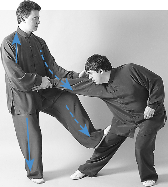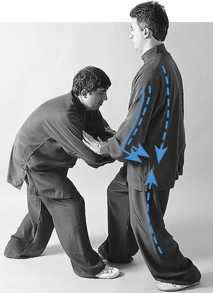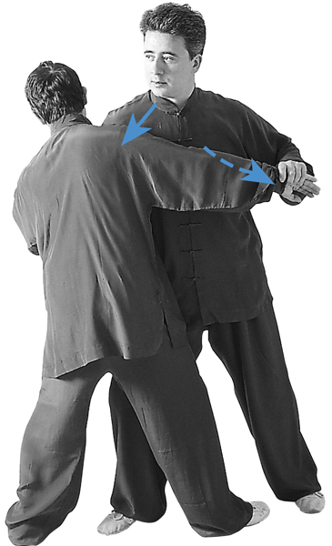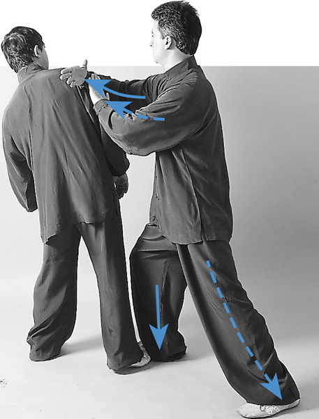 Fuerza de concentración. En cada técnica de Tai-Chi se presenta la posibilidad de concentrar toda la fuerza del cuerpo para golpear zonas incluso muy pequeñas, hasta llegar a los puntos vitales. Para entrenar esta fuerza, espirando, hay que apretar con las dos manos cruzadas, dando un golpe muy concentrado sobre el hombro de la persona que tenemos delante; naturalmente todos los puntos del cuerpo pueden ser golpeados, pero normalmente se utiliza la espalda del compañero para no causarle daño alguno.
