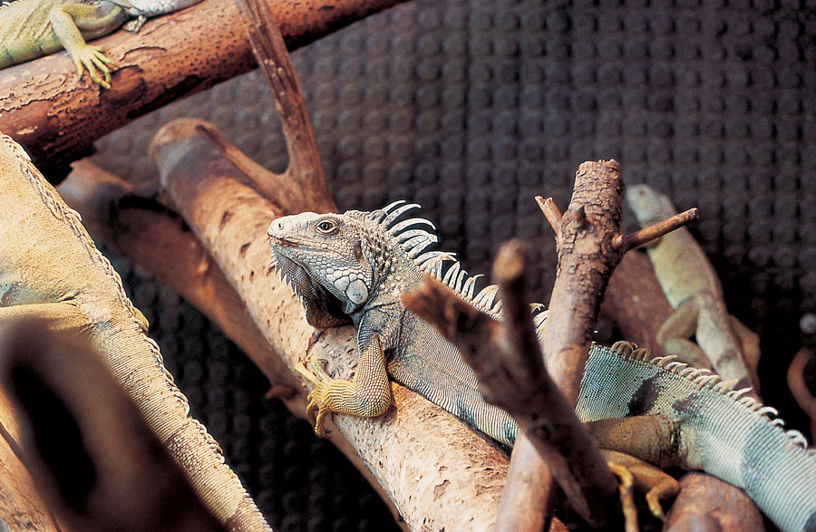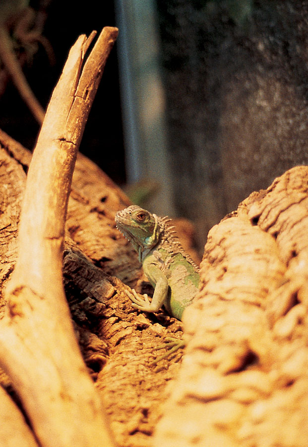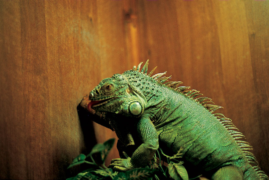 La iguana es un saurio tropical y ecuatorial vegetariano, solitario, territorial, agresivo, diurno, heliotropo y heliotérmico. Saber que la iguana adulta es un animal solitario y territorial es esencial para comprender cómo alojarla en un terrario o vivero. En particular, si nos han sugerido que tengamos varios ejemplares juntos del mismo sexo, y no disponemos de mucho espacio, tarde o temprano surgirán problemas.