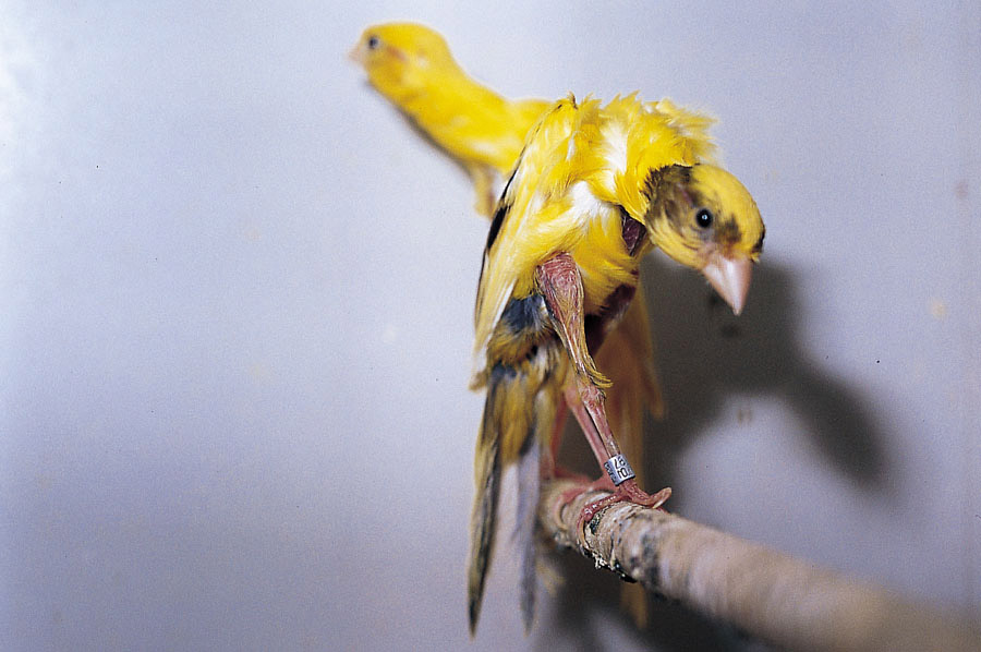 La primera mutación de color del canario original se obtuvo en 1670: la coloración amarilla, que fue seguida por la blanca y la marfil. La mutación rosa, en cambio, es fruto de una selección que se remonta al siglo xx, obtenida por medio del cruce entre el canario y el cardenal de Venezuela (Spinus cucullatus).