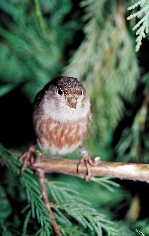 Canario hembra de la raza Sajona de color rojo mosaico, uno de los canarios de color que fue cruzado con más frecuencia con el cardenal de Venezuela