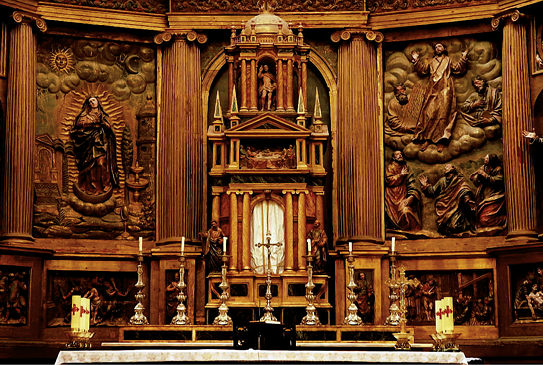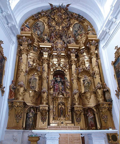 Fig. 11. Gregorio Fernández y los hermanos Juan y Cristóbal Velázquez, retablo mayor de la catedral de Plasencia, ultimado en 1632.