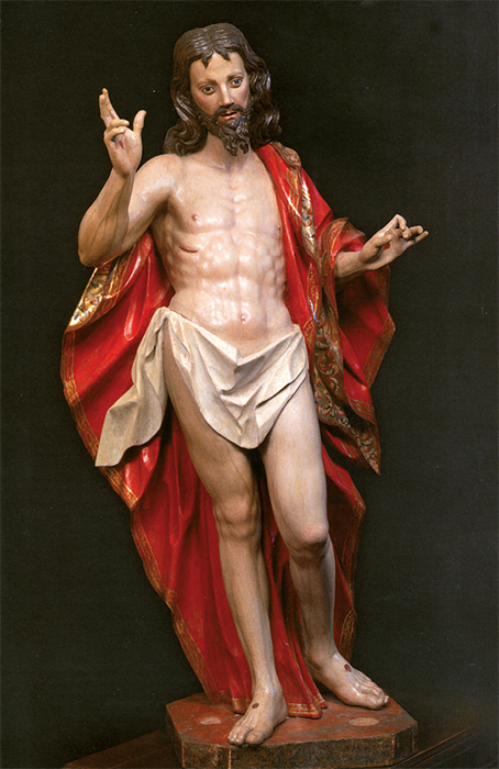 De este modo, cuando los ideales artísticos del Renacimiento se encuentren ya en sus últimos estertores al finalizar el siglo XVI, la tradición manierista —el alargamiento del canon (estilizado por tanto) en las esculturas, el contrapposto con el que estas se conciben para potenciar su volumetría y lograr la integración de la figura en el espacio que la rodea, largos cuellos, etc.—, en el mejor de los casos, irá cediendo paso a la captación del natural, con un interés cada vez más creciente por el hombre individual y la vida que fluye en su entorno. Es el mismo proceso que se da también en la pintura, con José de Ribera (1591-1652) y sus singulares personajes, muchas veces sacados de los bajos fondos del puerto de Nápoles, o en la literatura, con Miguel de Cervantes (1547-1616), las comedias de Lope de Vega (1562-1635) o la sátira mordaz de Quevedo (1580-1645). Sin embargo, y como bien recordaba Pérez Sánchez, el fuerte acento religioso de la escultura española a finales del siglo XVI, controlada por la Iglesia y abocada a ilustrar de forma fiel y decorosa la mentalidad contrarreformista, no había tenido ocasión de desarrollar los caprichos manieristas, “de extrema imaginación, arrebatada y vibrante, que en su momento pareció iniciar Berruguete (muerto en 1561) y que, en pintura, hizo culminar en su soledad toledana El Greco”. El desarrollo de nuestra escultura finisecular del quinientos se había mantenido en un tomo mucho “más mesurado y digno, solemne y grandilocuente en sus gestos, tomados prestados a Miguel Ángel en muchas ocasiones, pero siempre en un tono de estricta verosimilitud, tal y como la sensibilidad contrarreformista exigía para la imagen de culto, atenta a una serena gravedad, contenida y equilibrada, que supo utilizar los modelos del clasicismo y rehuir todo artificioso capricho”[59].