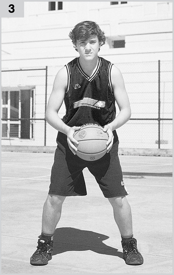 La posición básica requiere que el jugador esté semiflexionado, con los pies separados y la cabeza alta, para poder observar el desarrollo del juego. Las manos también estarán en tensión, preparadas para recibir la pelota en cualquier momento (fig. 3). Es una posición de equilibrio, en la que el centro de gravedad se encuentra más bajo de lo normal, permitiéndonos realizar movimientos rápidos sin perder el equilibrio. De hecho, es más fácil caerse estando completamente erguidos que adoptando esta postura.